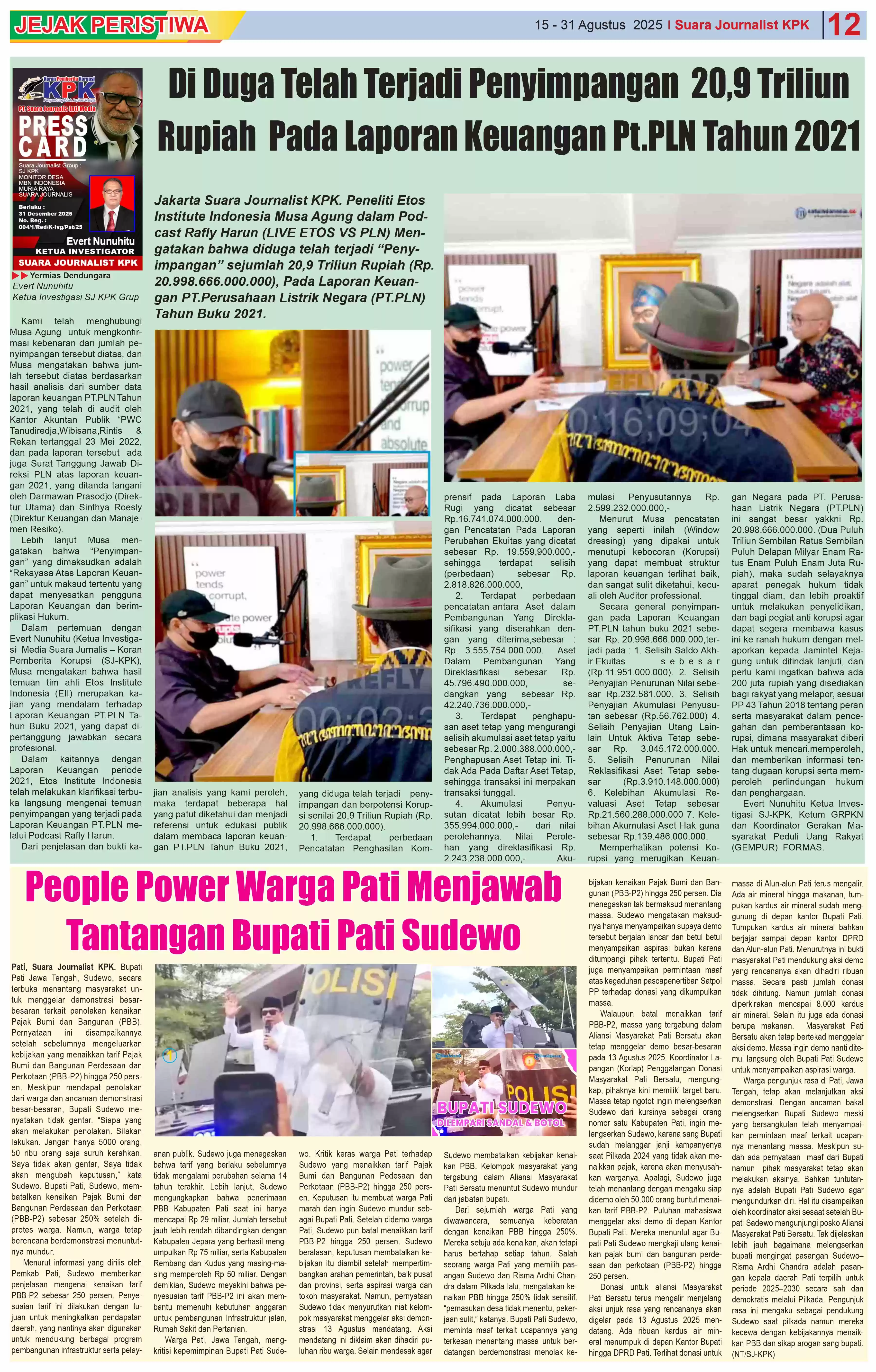 Menurut Evert Nunuhitu yang juga adalah Ketua Investigasi media SJ-KPK, mengatakan telah banyak pemberitaan korupsi yang diberitakan oleh Mass Media (Online dan Cetak) dan jumlahnya dugaan korupsinya mencapai Ratusan Triliun Rupiah, namun belum direspon secara maksimal oleh Instansi penegak Hukum (Kejagung, KPK, dan Polri).